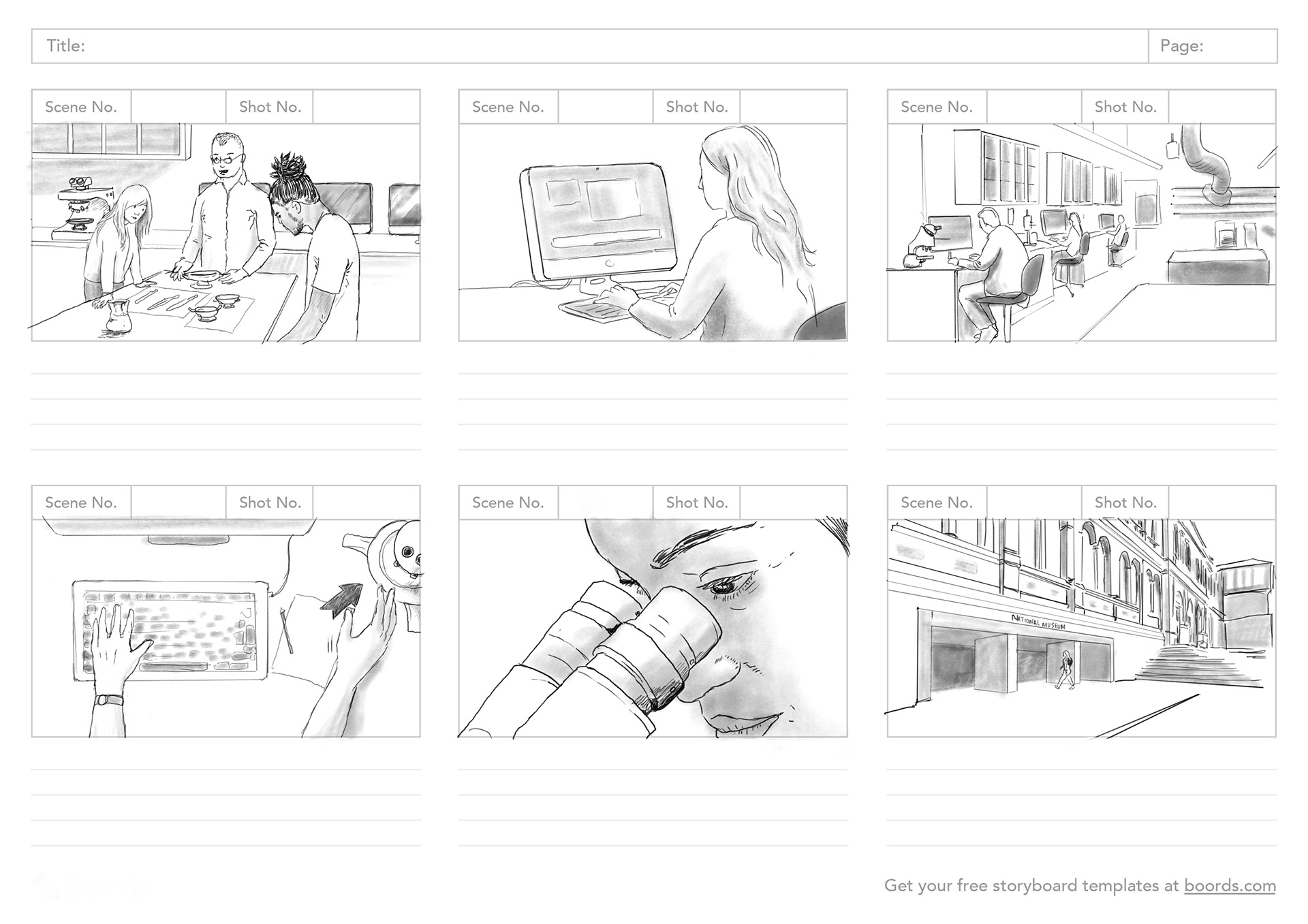 Storyboard for an advertisement for the Science department at the Edinburgh University.